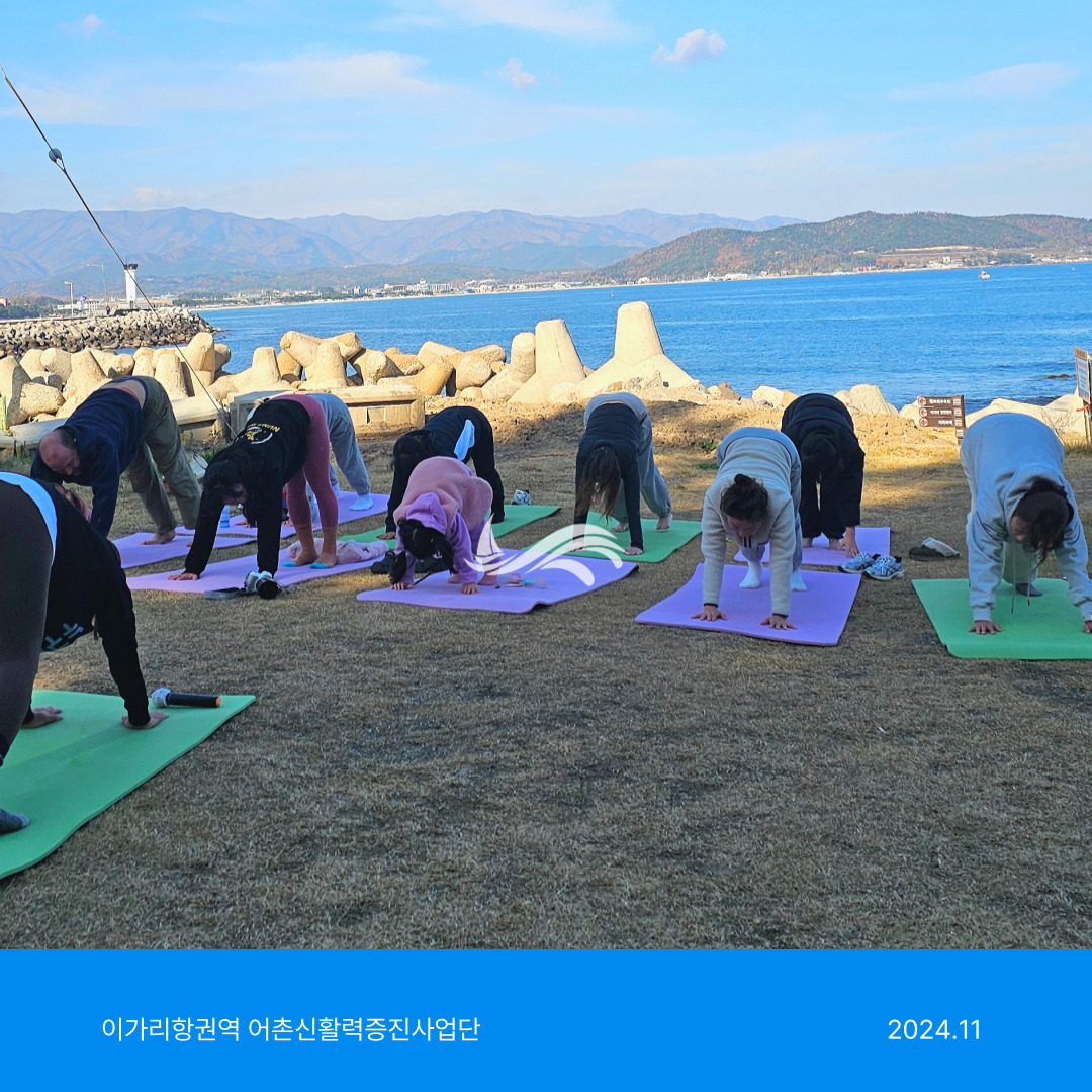 이가리 바다 앞 해변에서 파도 소리를 배경으로 요가 세션이 펼쳐졌습니다.